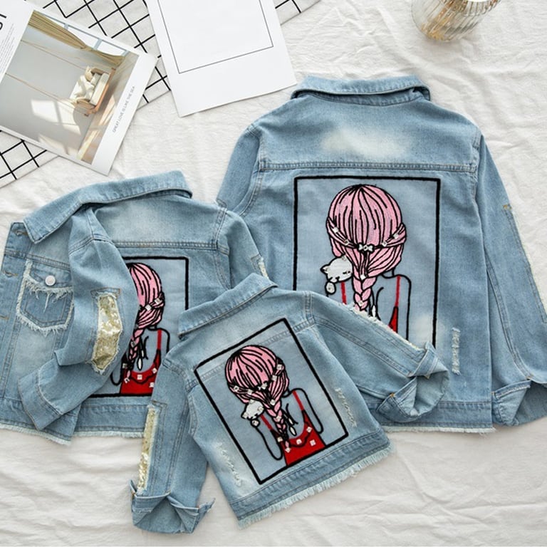 Tags: girls' jacket, denim jacket, jacket, spring, summer, autumn, children's clothing, girls' fashion, stylish jacket, children