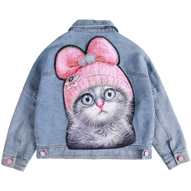 Girls' Denim Jacket with Cat