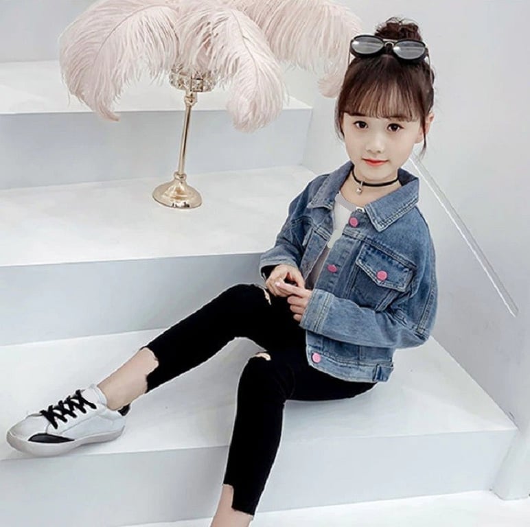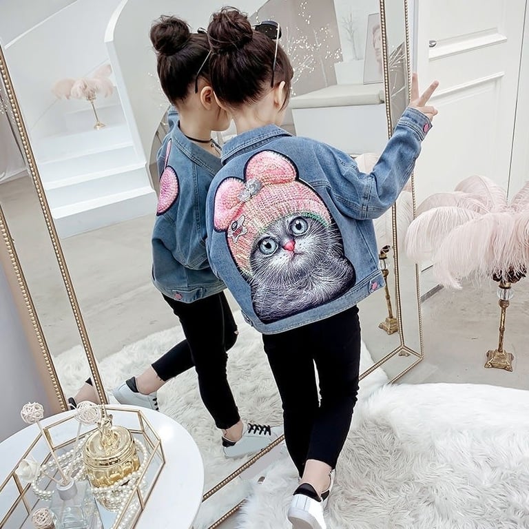 Girls' Denim Jacket with Cat