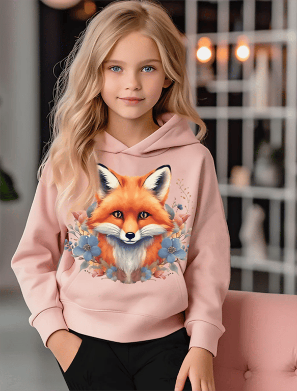 Girls' designer hoodie with a 3D fox print.