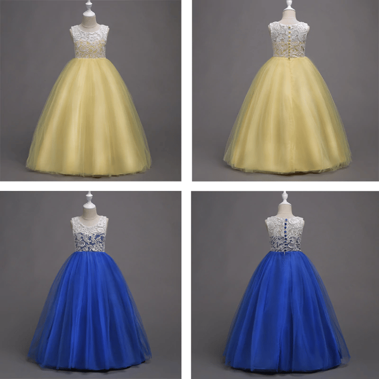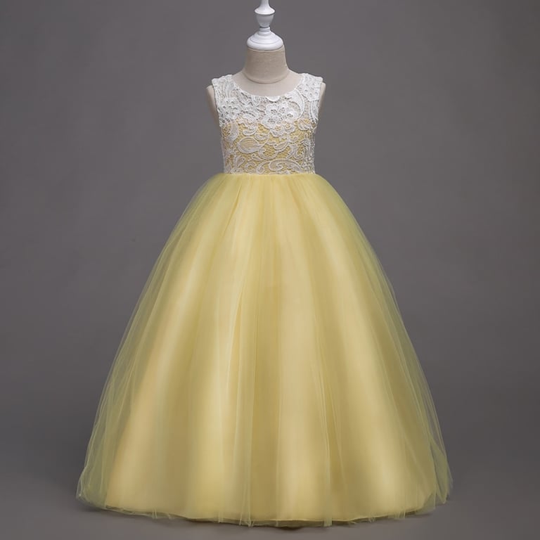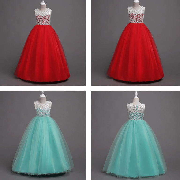 Elegant Long A-Line Dress for Girls Decorated with Lace