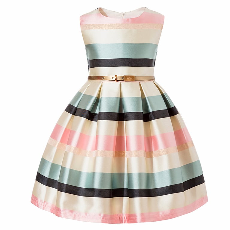 Beautiful evening, striped dress with a belt will delight every little girl or young lady.