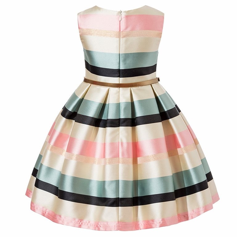 Beautiful evening, striped dress with a belt will delight every little girl or young lady.