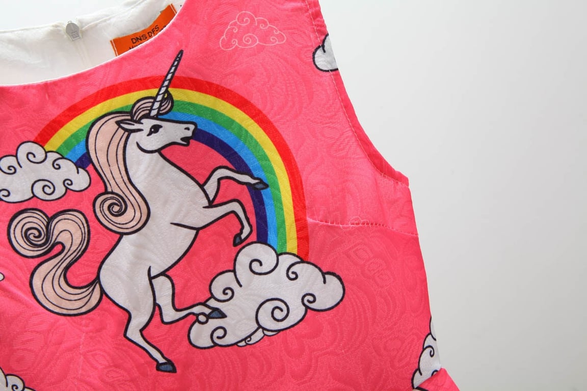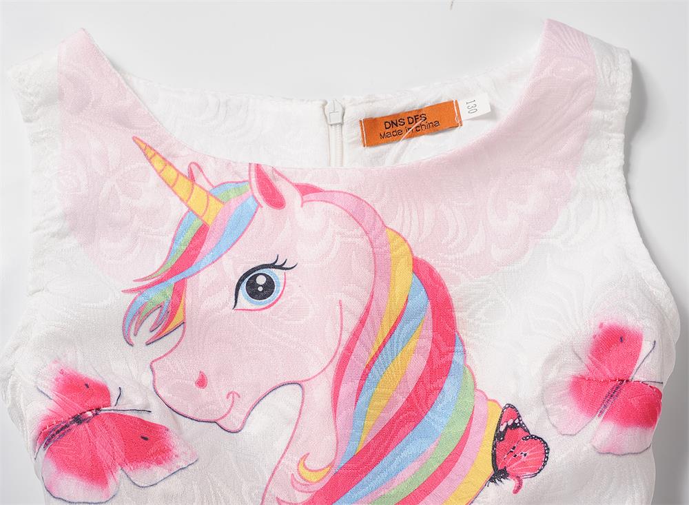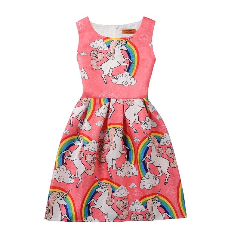 Girls' festive cocktail summer dress with unicorns and more