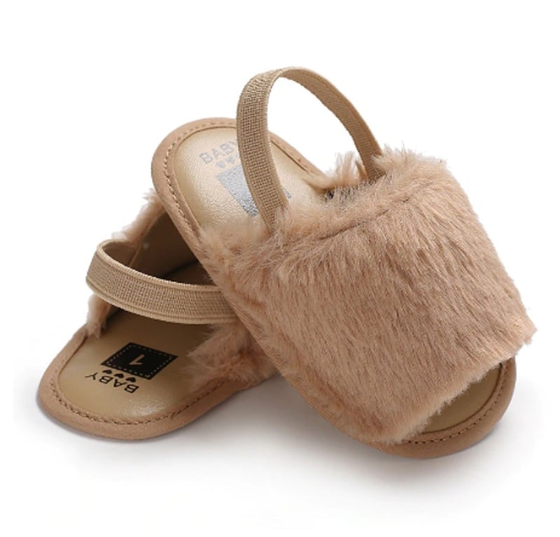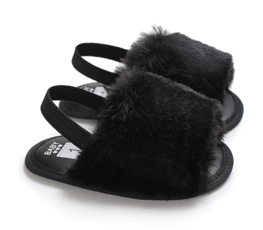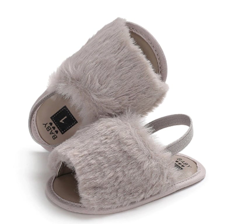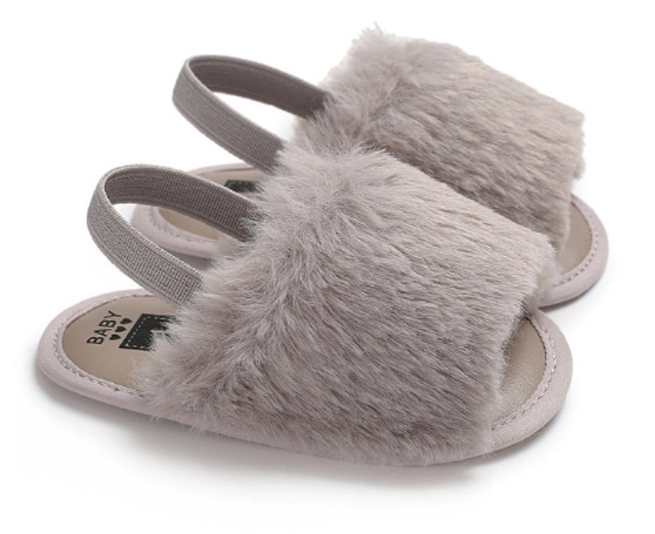 Girls' fluffy slippers with a strap around the heel are comfortable!
