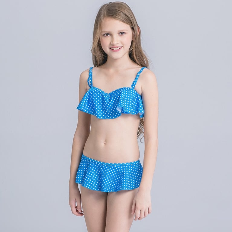 Girls' Ruffled Polka Dot Bikini