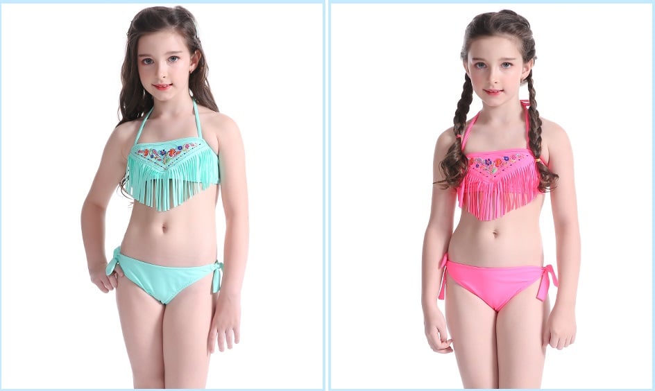 Every little girl around will want these beautiful fringed bikinis.