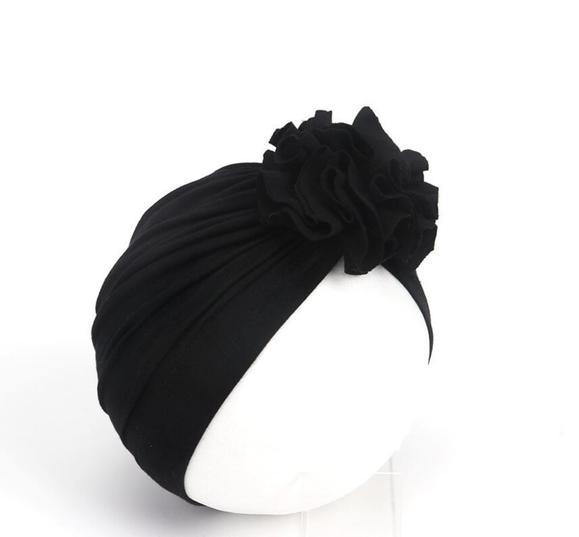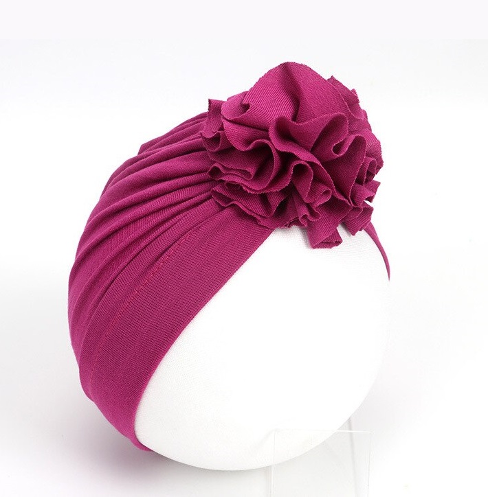 Georgia girls' hat With a fabric appliqué in the shape of a flower. Material: polyester, cotton, acrylic Dimensions: 18 x 17 cm
