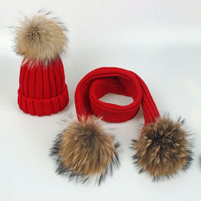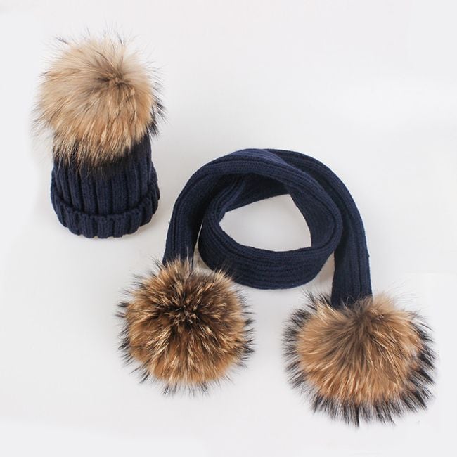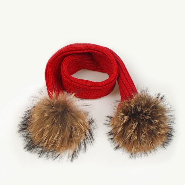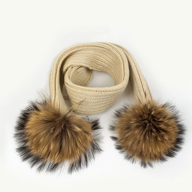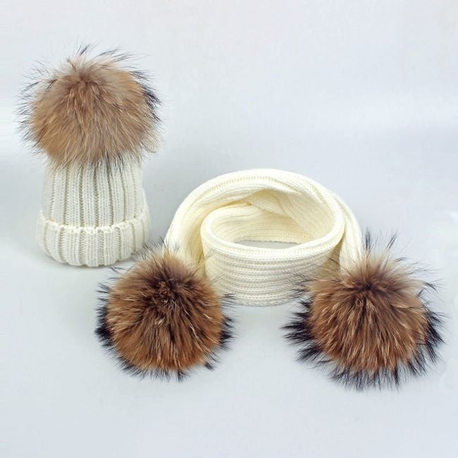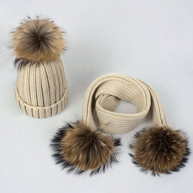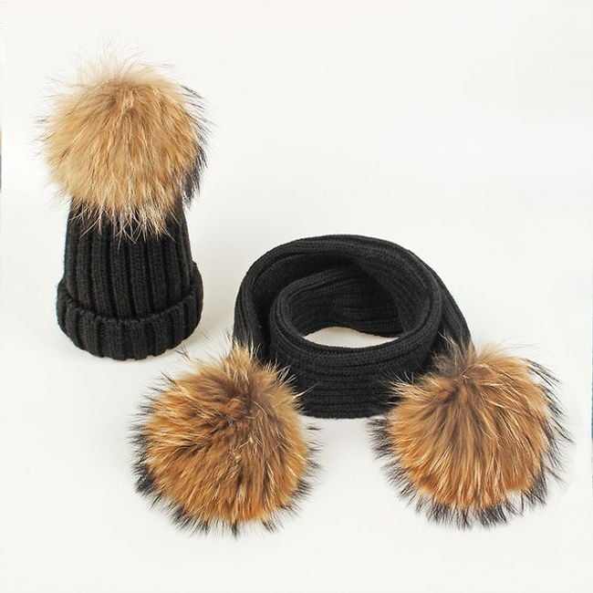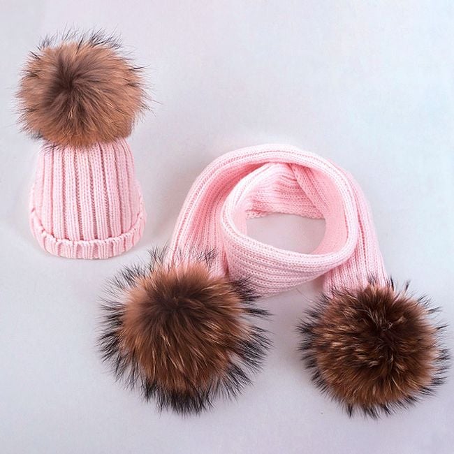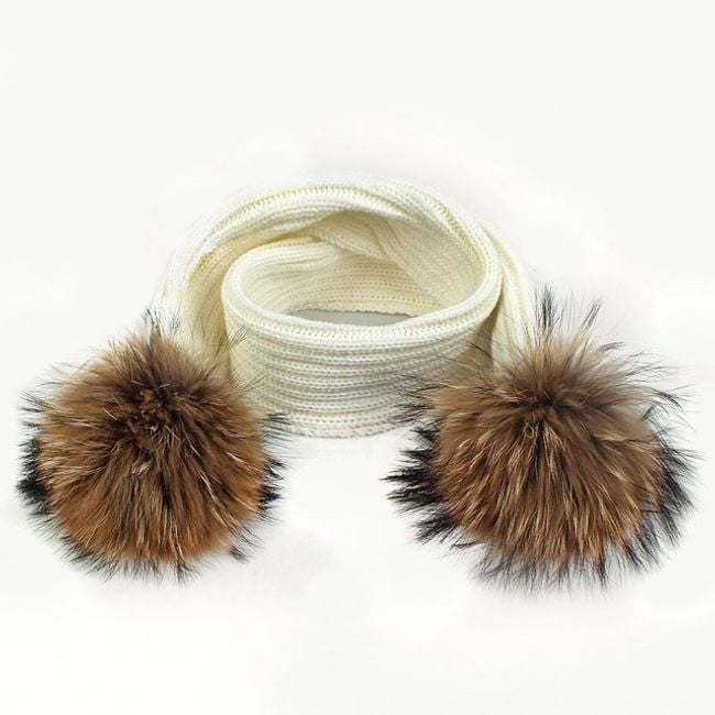 Girl's hat or scarf with a pom-pom made of faux fur.