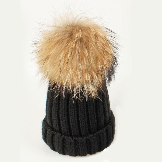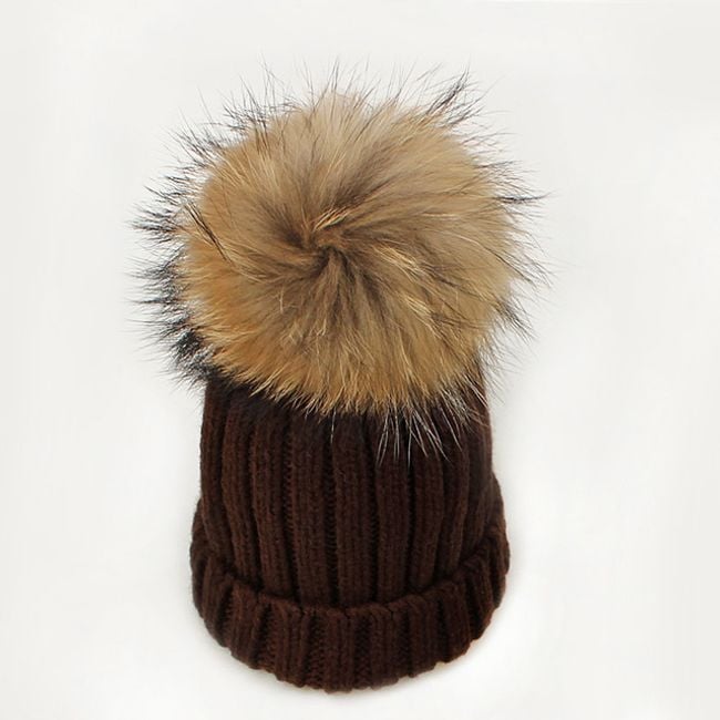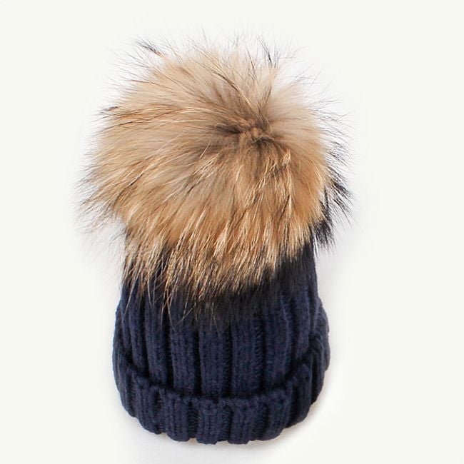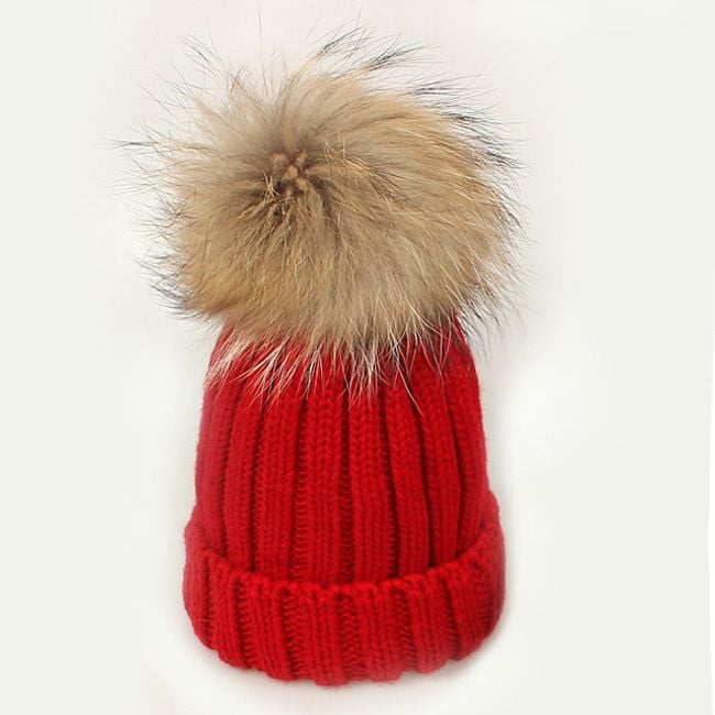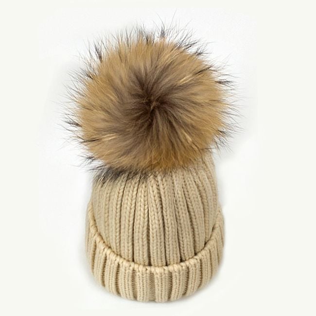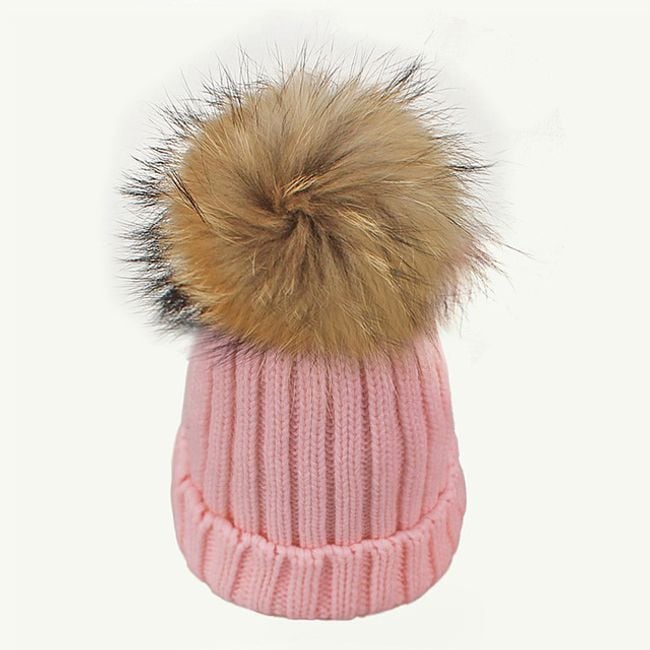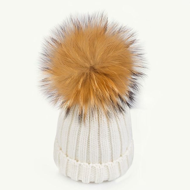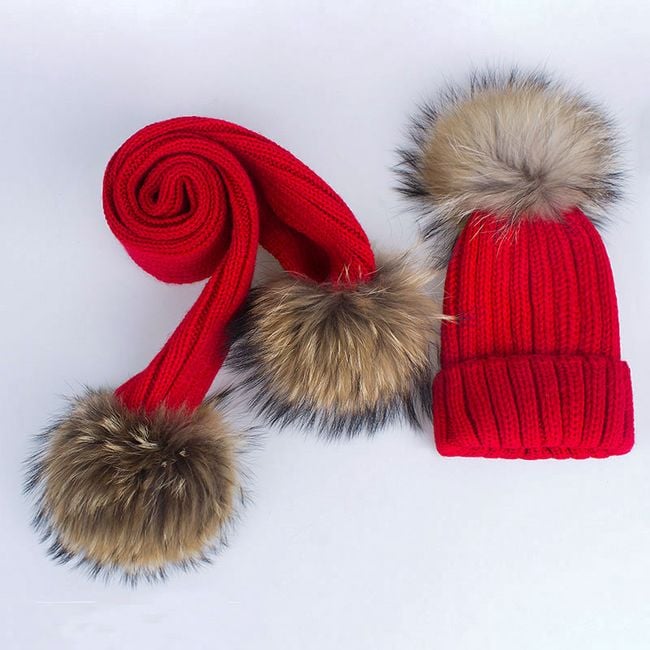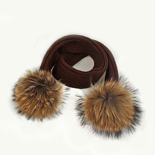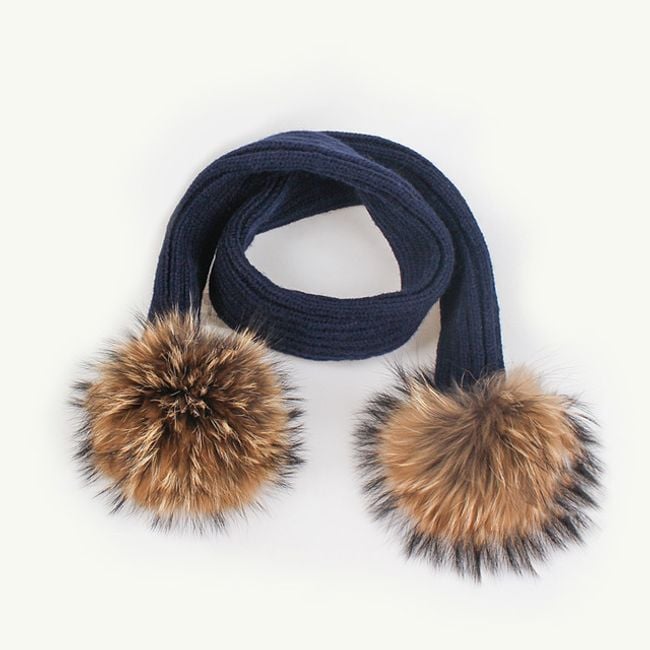 Girl's hat or scarf with a pom-pom made of faux fur.