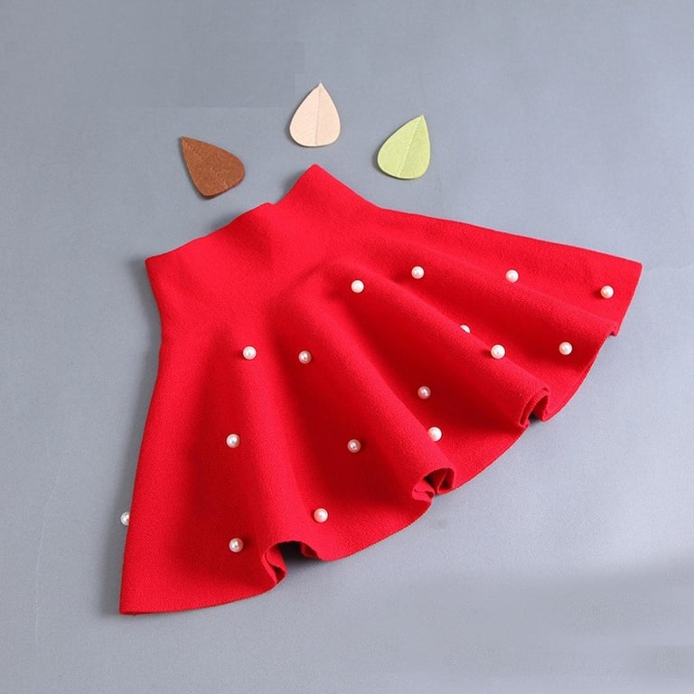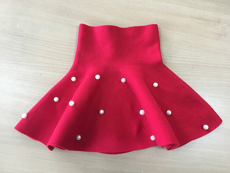 Girl's skirt with a high waist and small pearls that are only at the front.