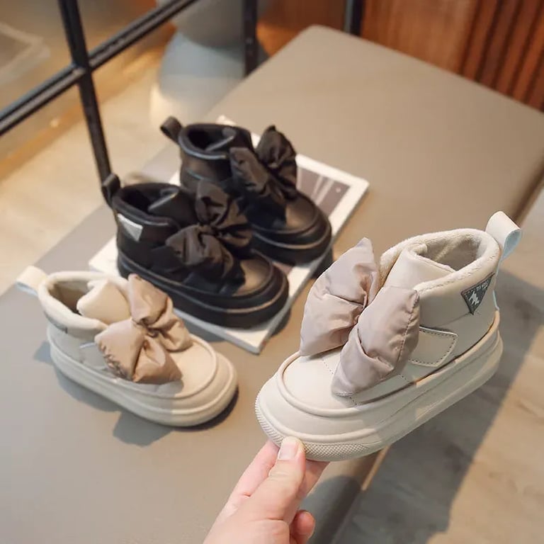 Girls' insulated winter boots with a bow.