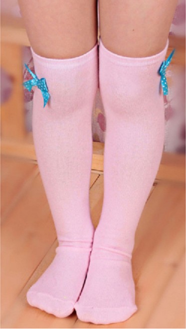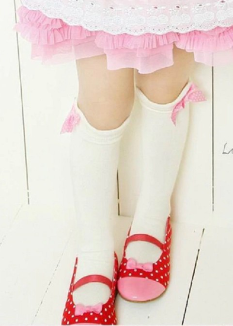 The knee-high socks are beautiful, and the top edge is adorned with a small bow on both sides.