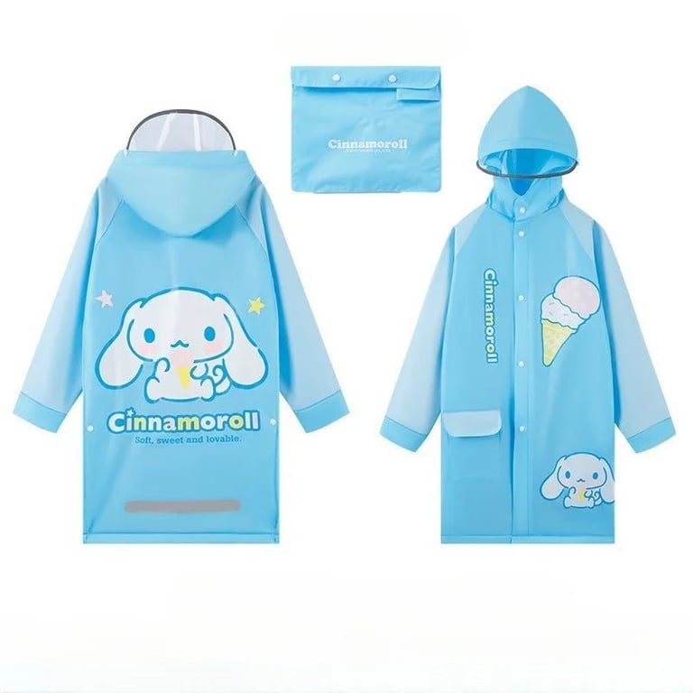 A children's rain cape with the Kuromi motif from the Sanrio collection is a stylish and practical accessory for rainy days. The rain cape is made from lightweight, quick-drying material, has a hood, button fastening, a pocket and a bold coloured print of Kuromi on the front and back. The packaging also includes a practical pouch for easy carrying or storage in a backpack.