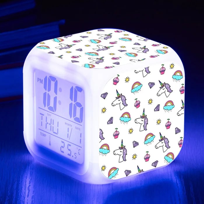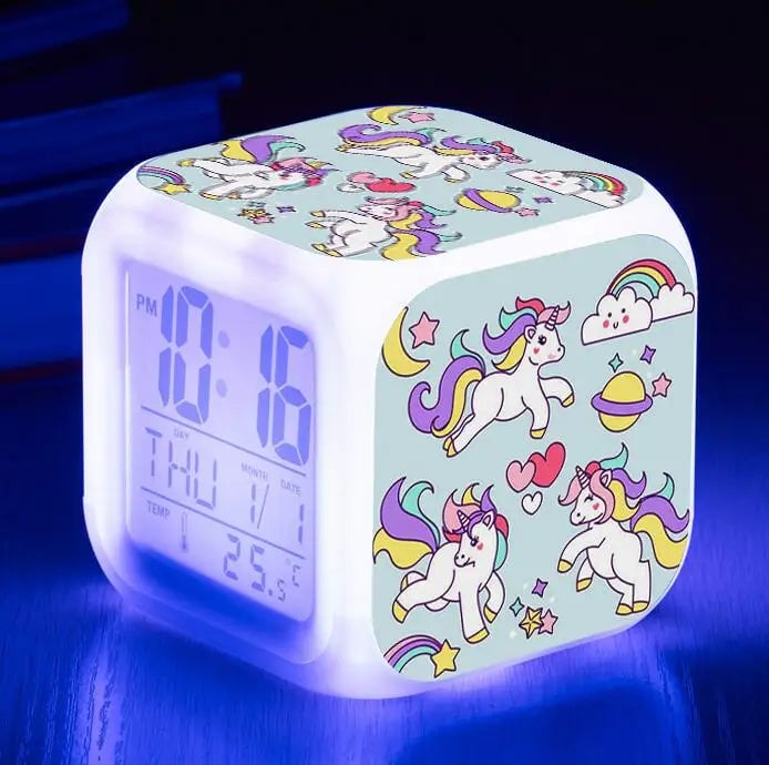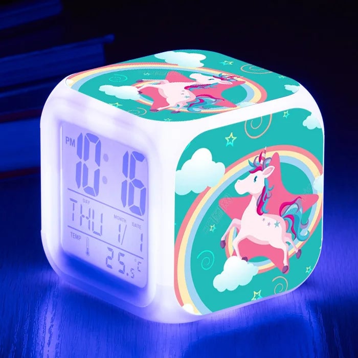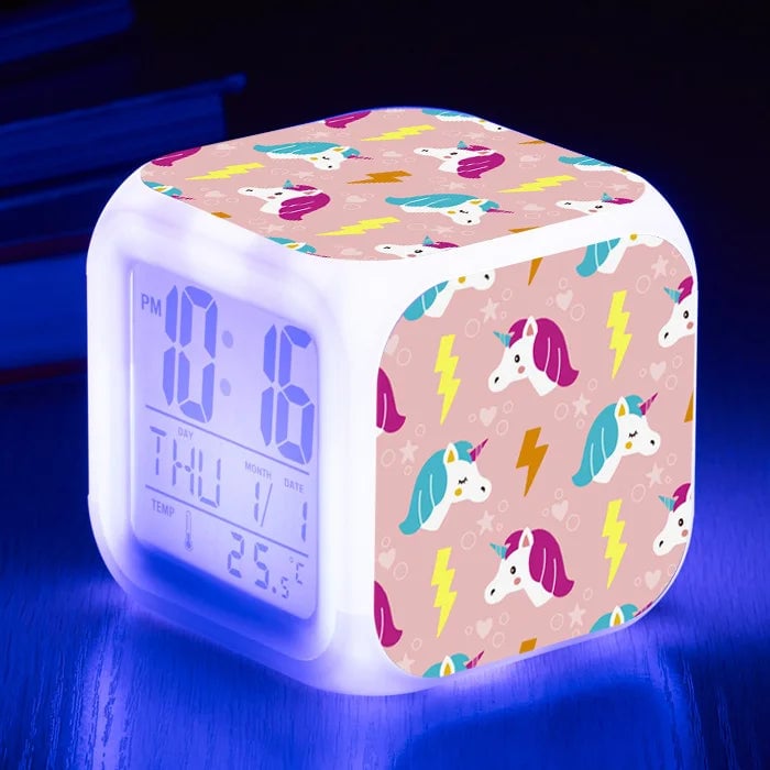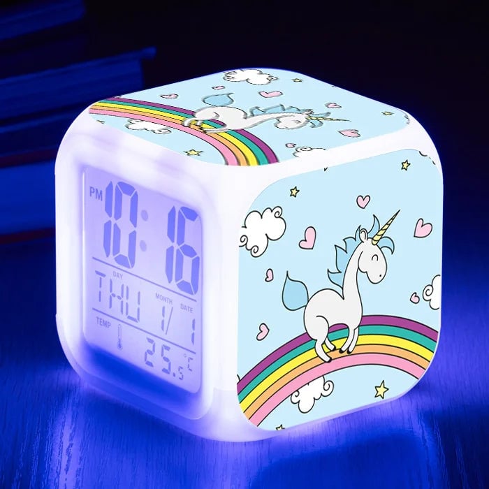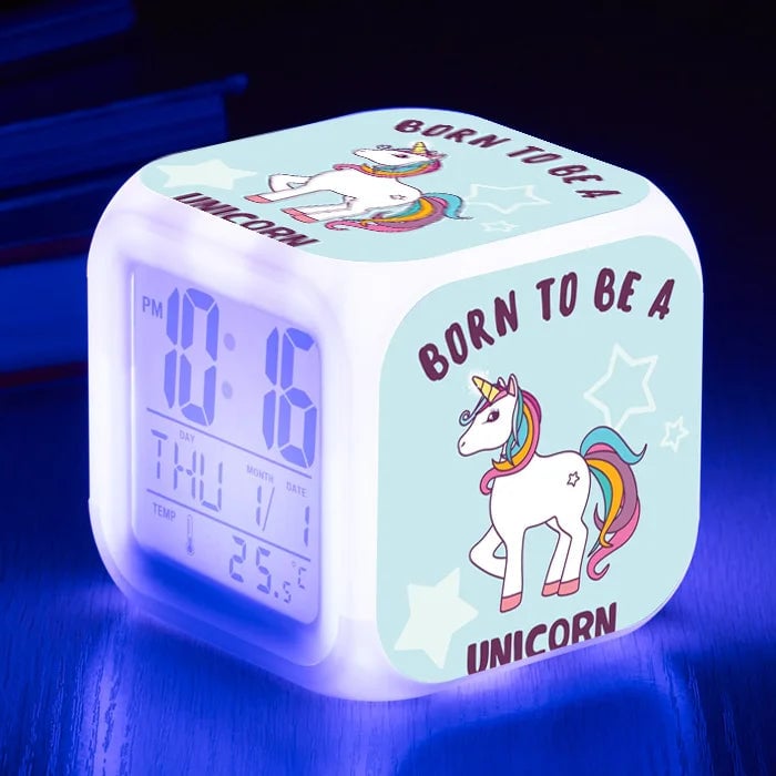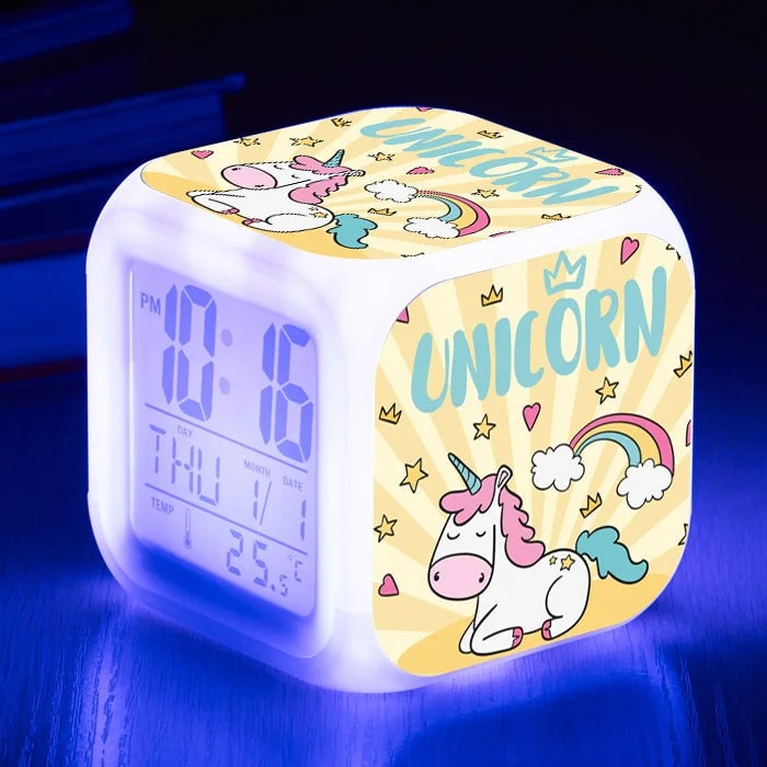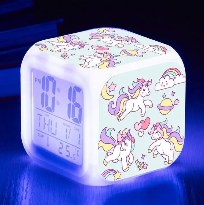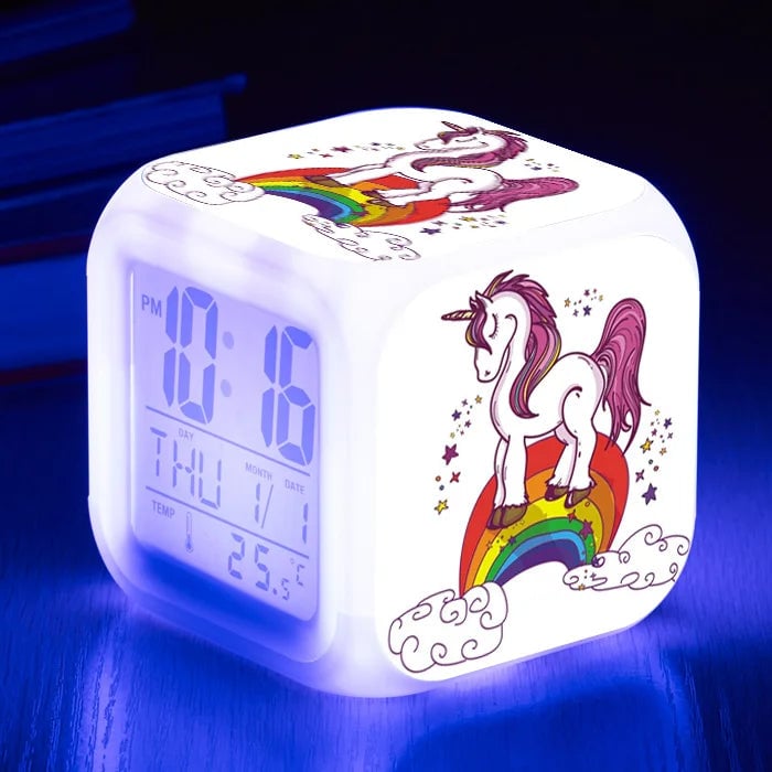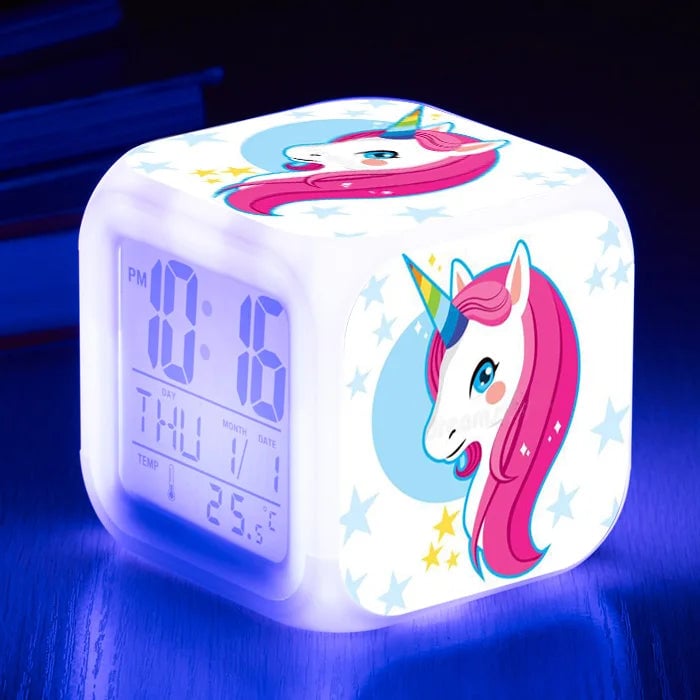 Girls' LED unicorn alarm clock.