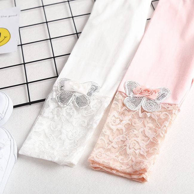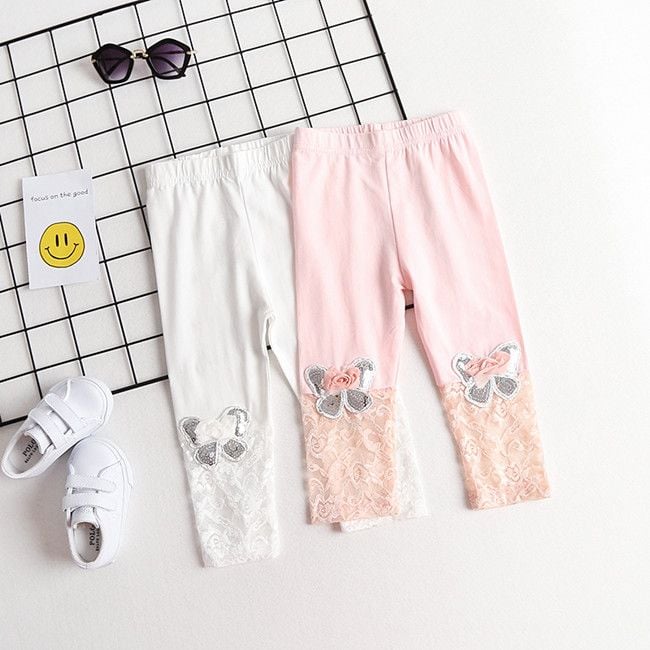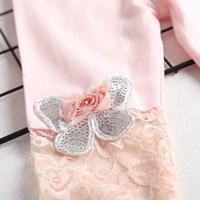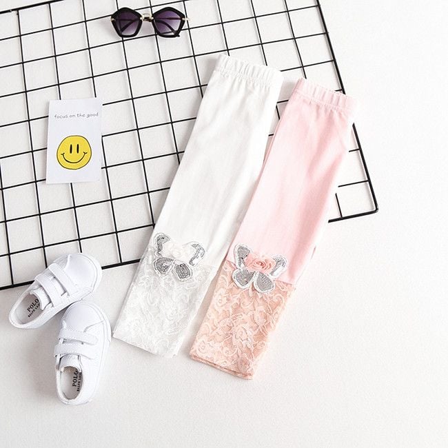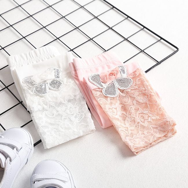The leggings are adorned with butterflies and lace, and will delight every little fashionista.
