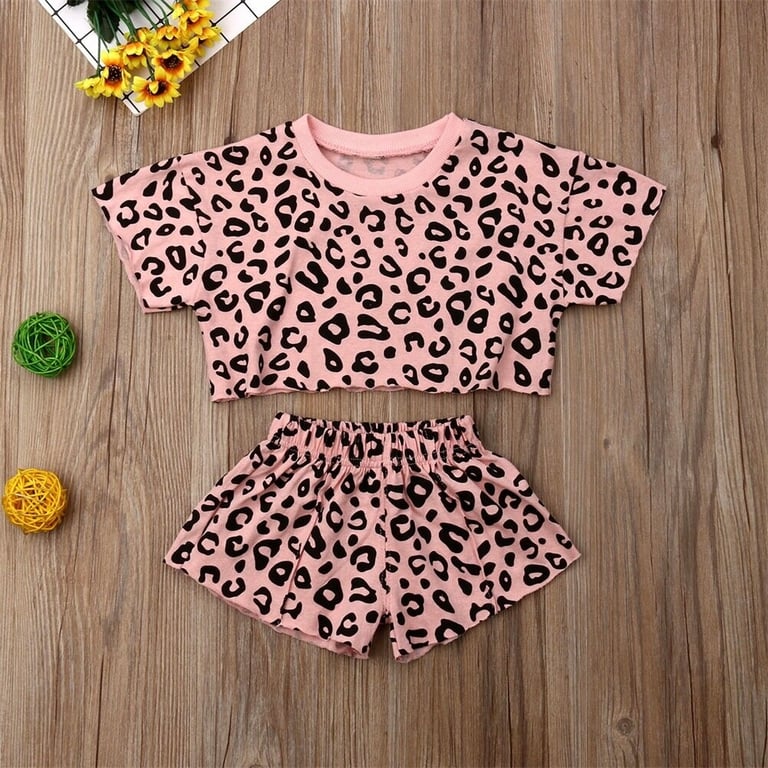 Girls' Leopard Print T-Shirt and Shorts