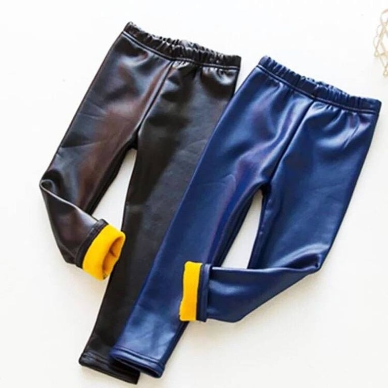 Stylish girls' insulated leggings made from faux leather. These leggings are suitable for cool and wintery weather.