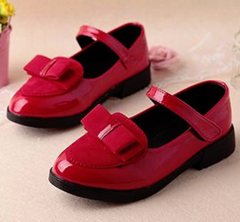 The ballerinas are adorned with a bow and fasten with Velcro.