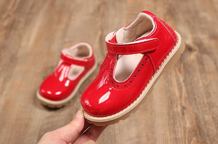 Even the smallest ladies will make use of these girls' patent shoes in warm summer weather.