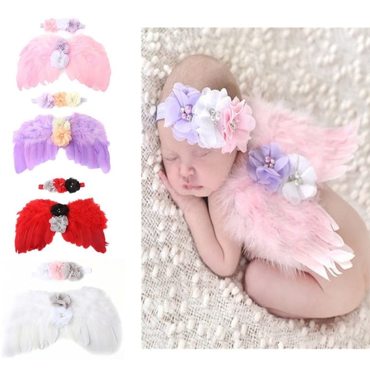 Cute set for newborn photography - angel wings made of feathers and a headband.