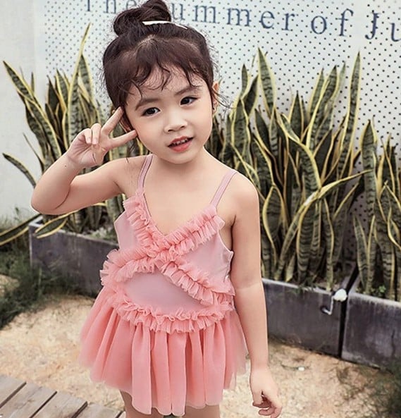 Beautiful two-piece swimwear will be a great choice for your little princess.