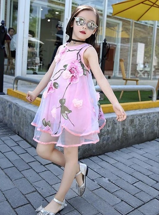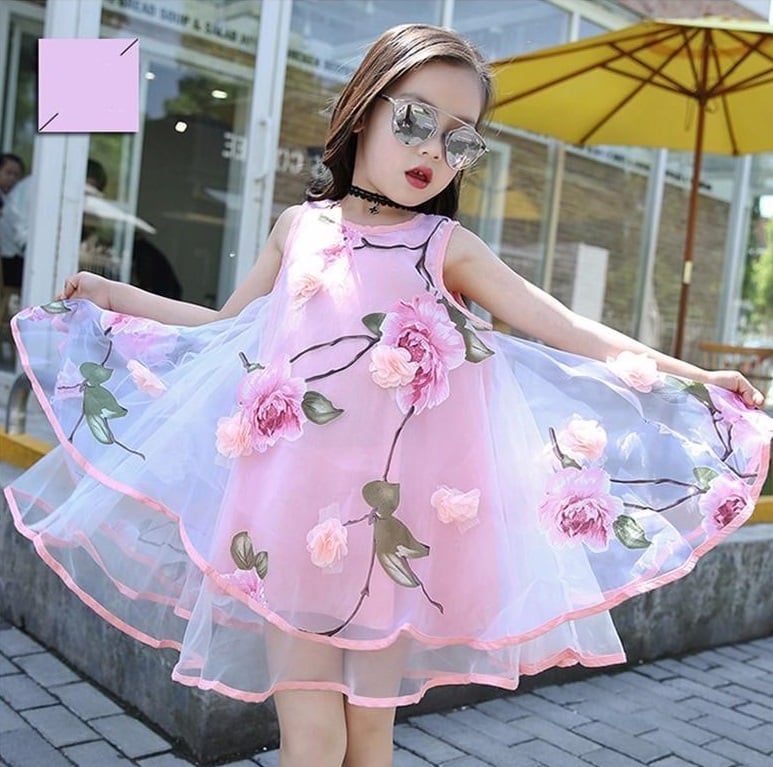 Beautiful girls' dress with lace and flowers, for true princesses.