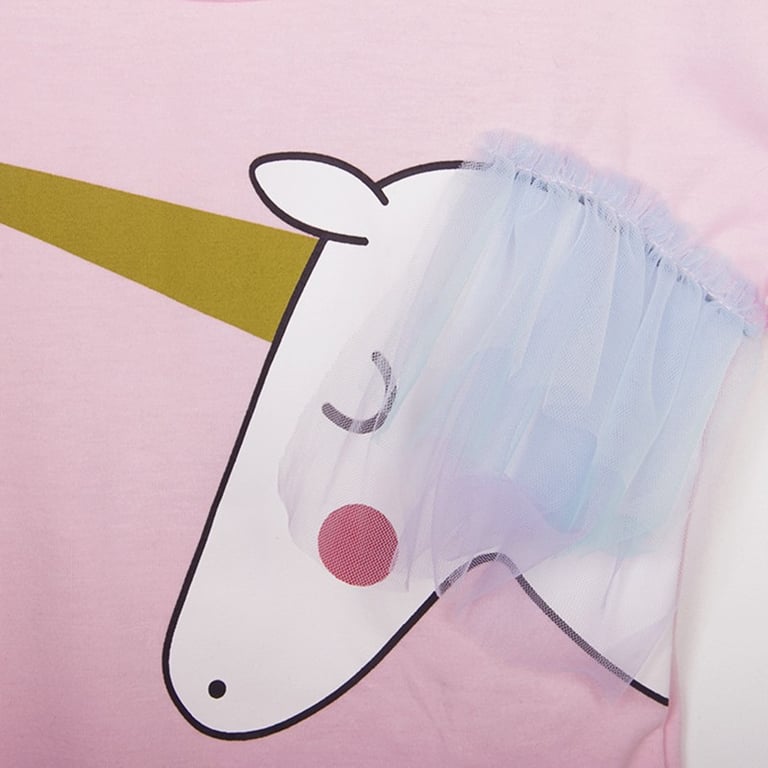 This set consists of a t-shirt with a unicorn and a rainbow skirt, which will delight every little girl.