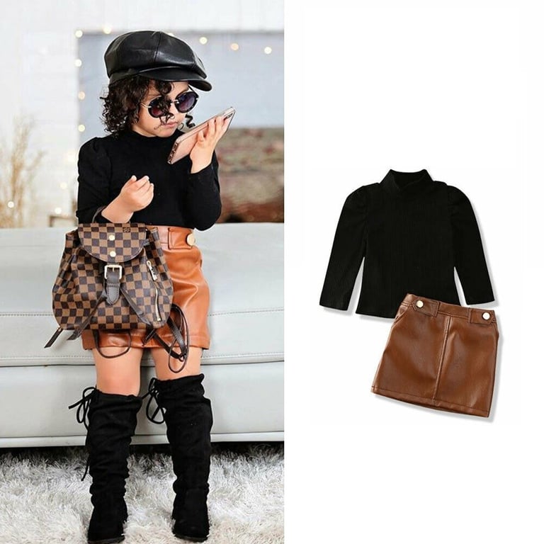 Girl's roll neck and leather skirt ToddlerTrinket™