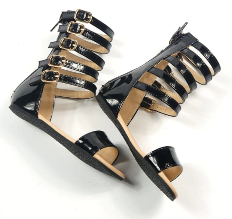 The sandals feature straps that fasten at the back with a zip.