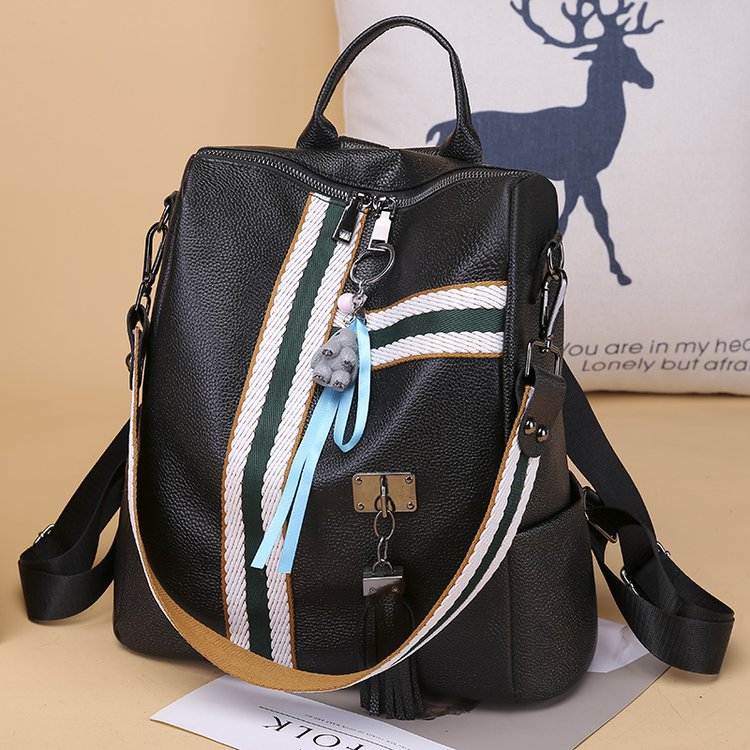 Girls' school backpack with stripes made of synthetic leather.