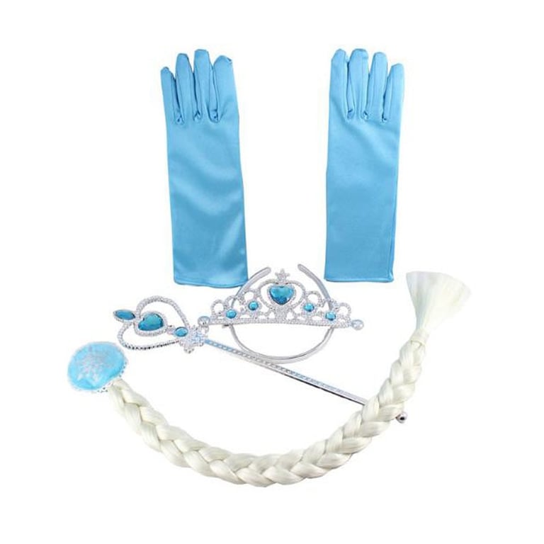 Girls' set crown, wand, gloves and braid for princesses (4 pieces)