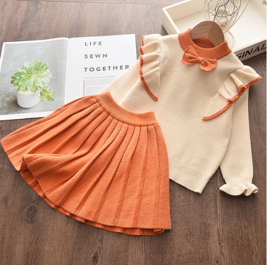 Girls' sweater set with ruffles and skirt