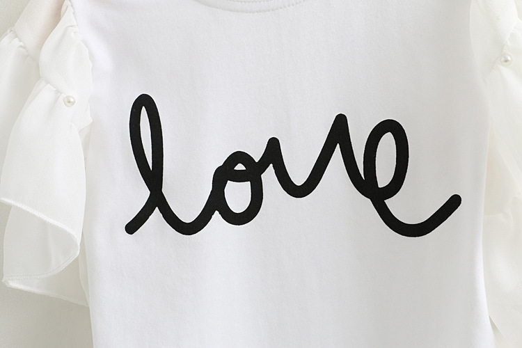 In this beautiful set of a frill t-shirt with the word LOVE and shorts with hearts, your little girl will look magical.