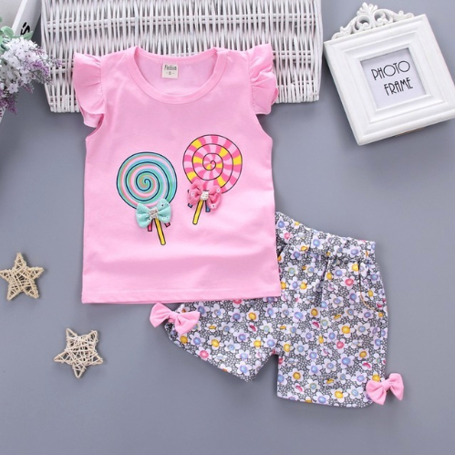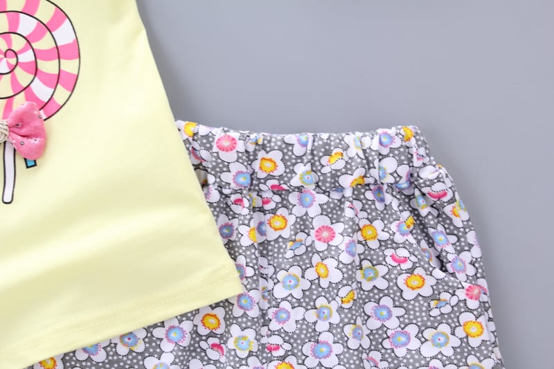Girls' set – T-shirt with lollipops and shorts with flowers – 4 colours