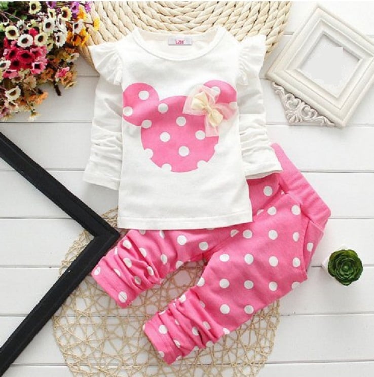 Girls' set with Minnie Mouse print – t-shirt and trousers – Pink