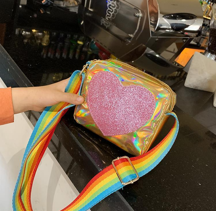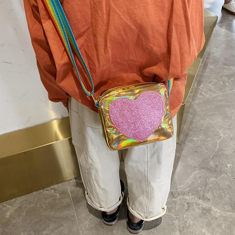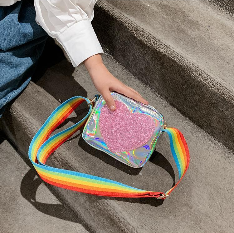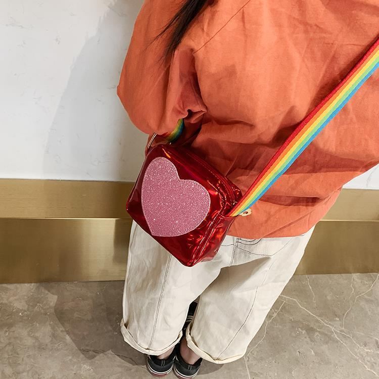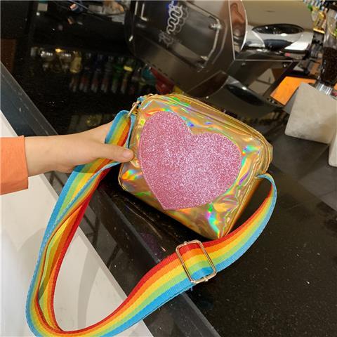 Girls' shiny shoulder bag with a rainbow strap