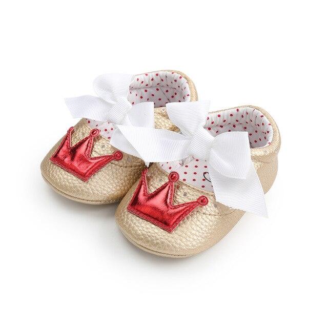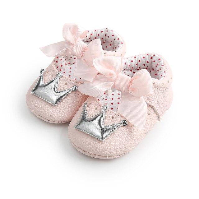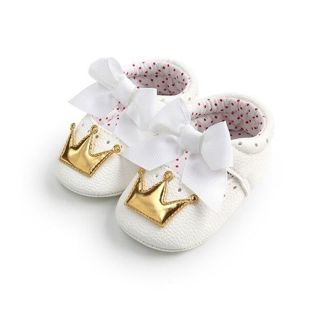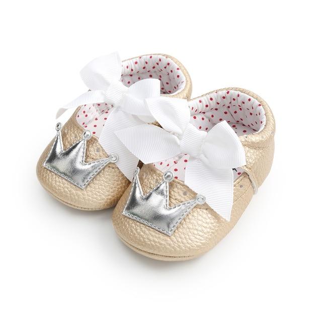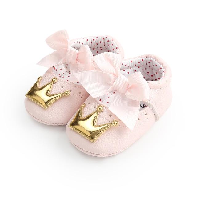 Beautiful girls' shoes for newborns with a crown.