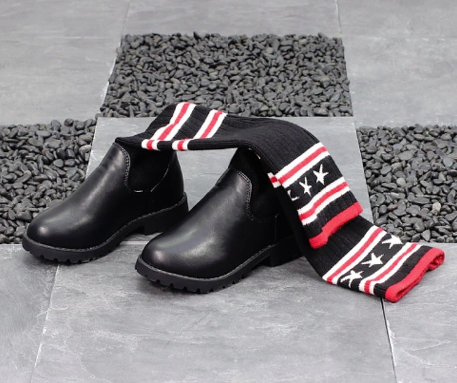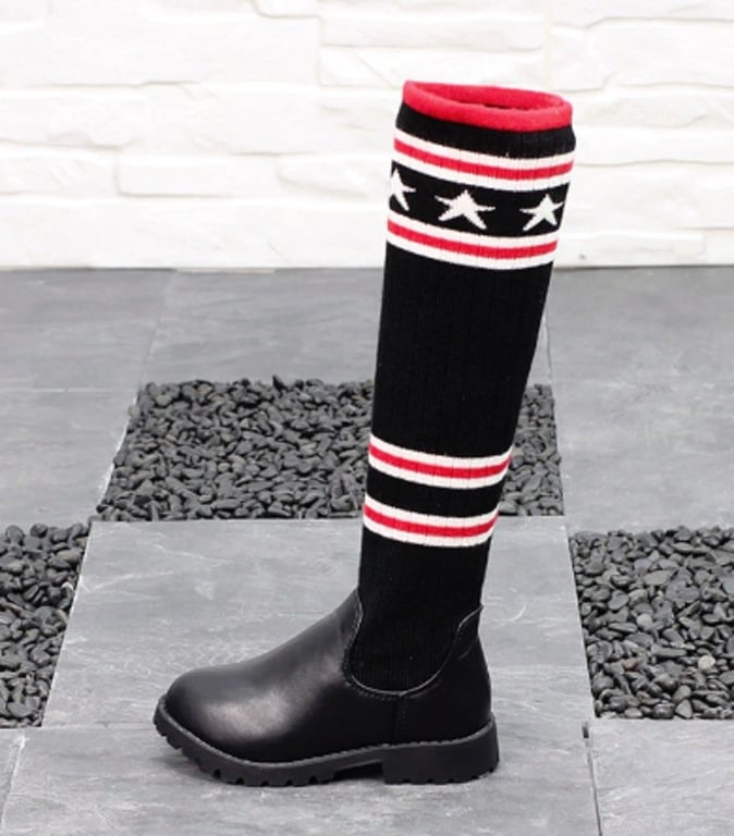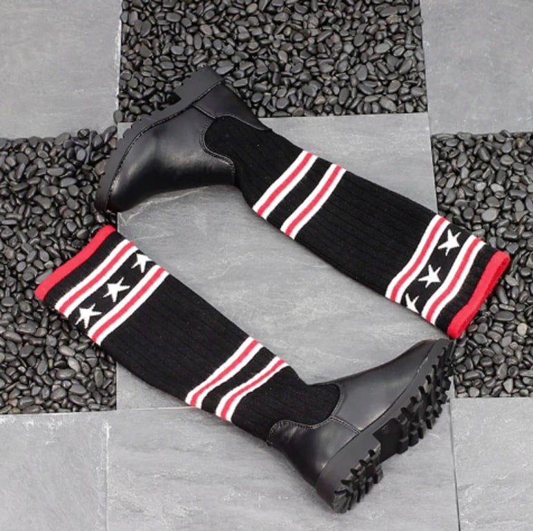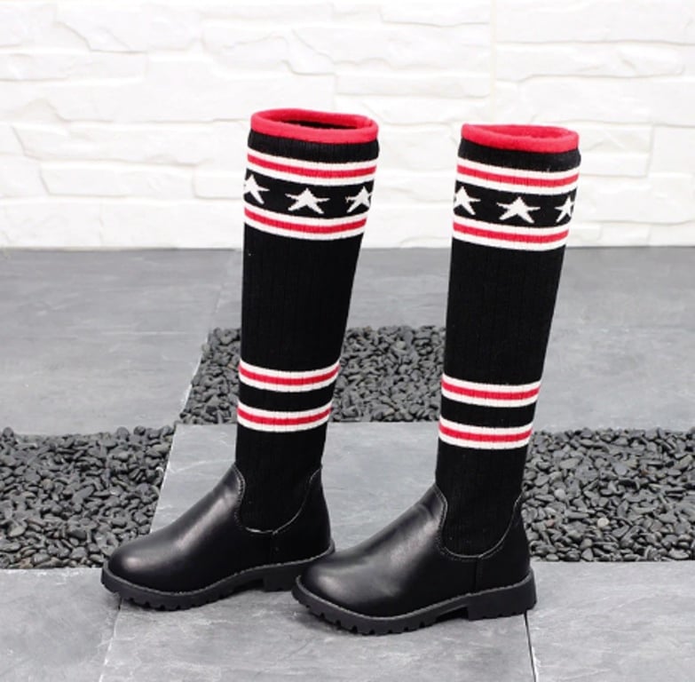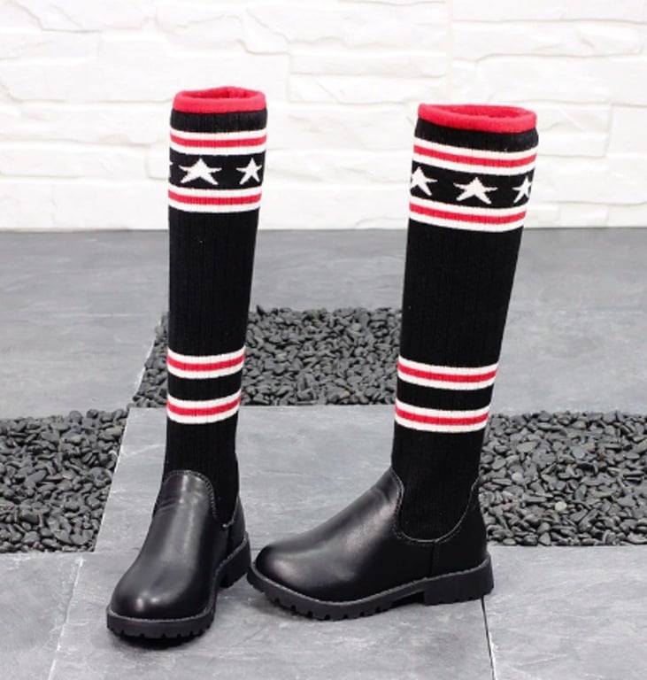 These shoes with knee-high sock covers are suitable for skirts or dresses.