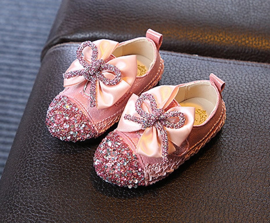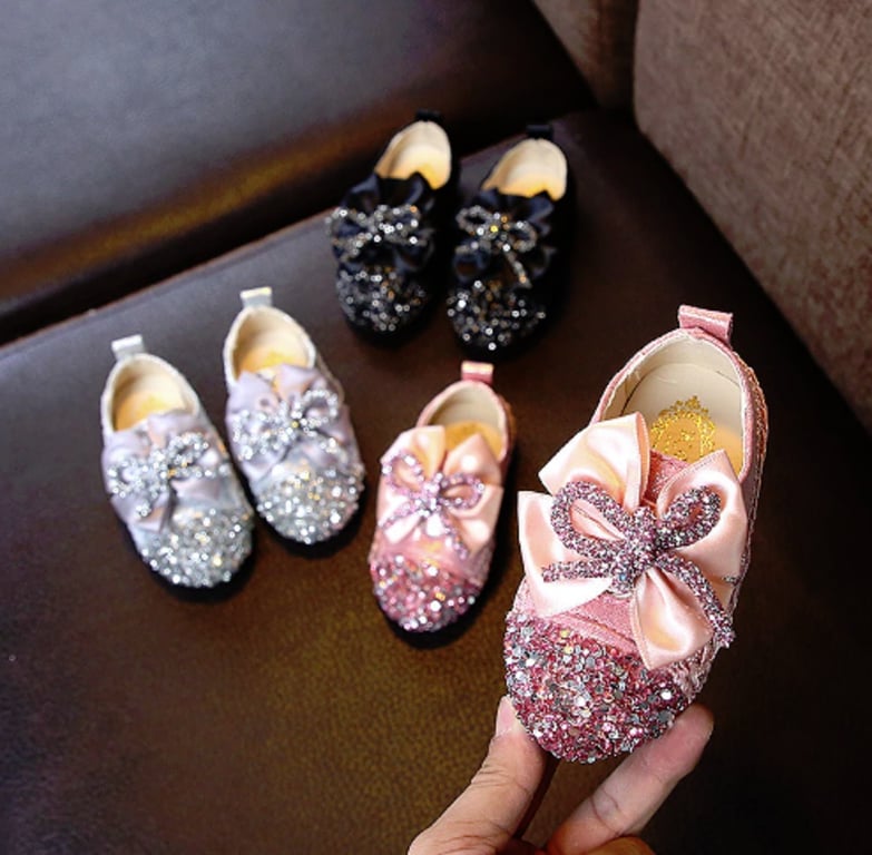 The highlight of these shoes is the sparkling sequins with a bow.