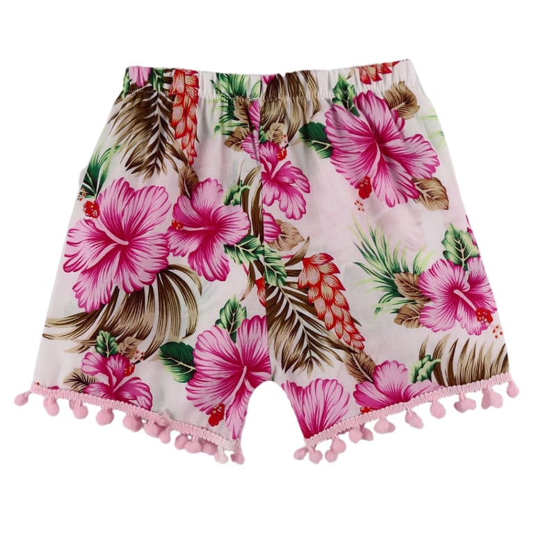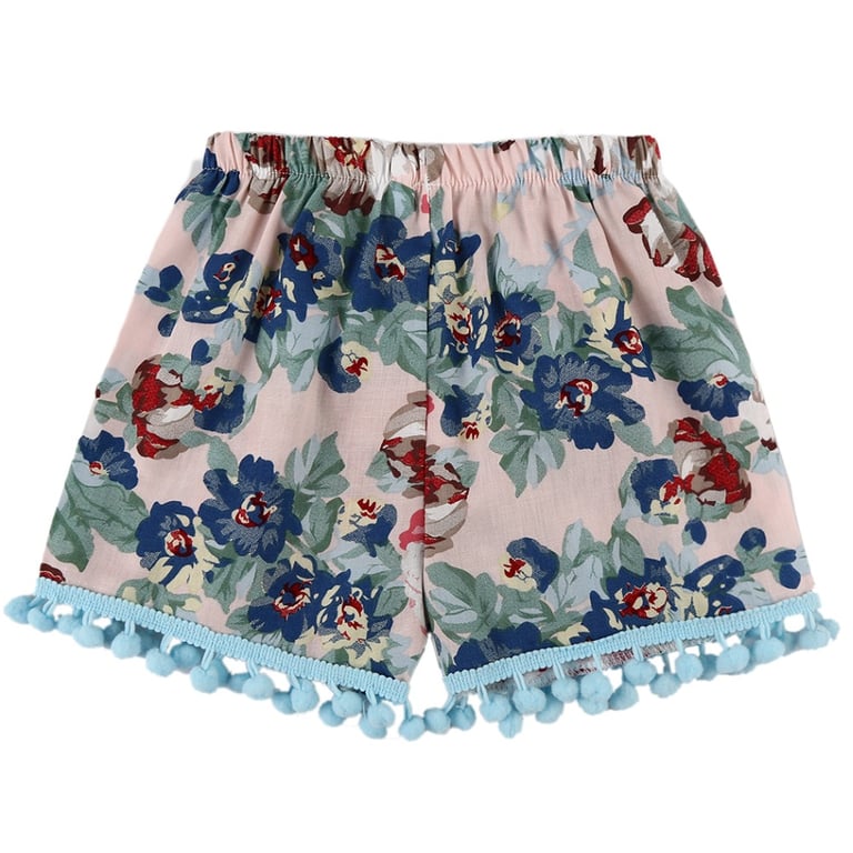 Beautiful girls' shorts with a floral print and fringes.