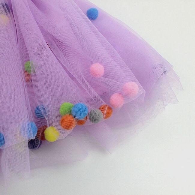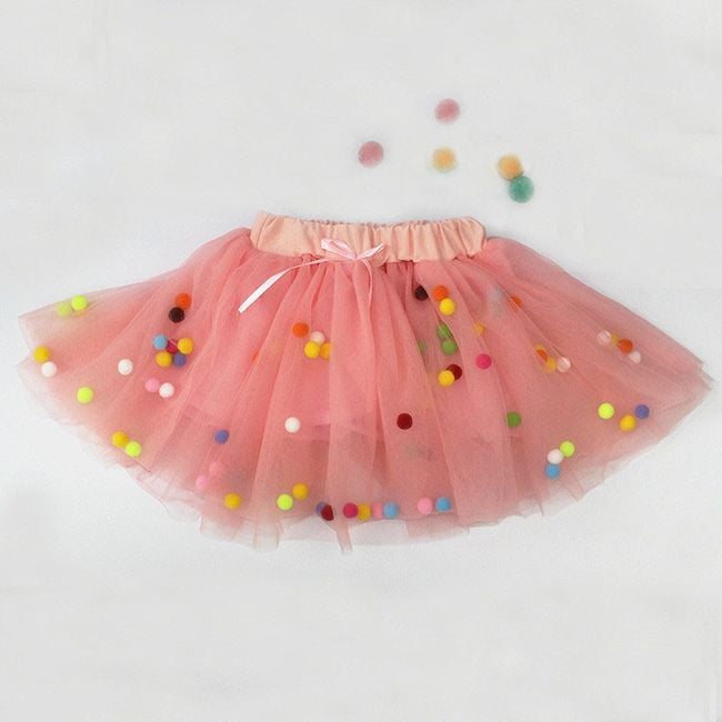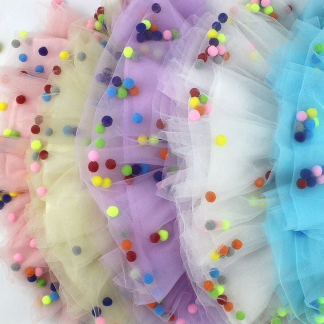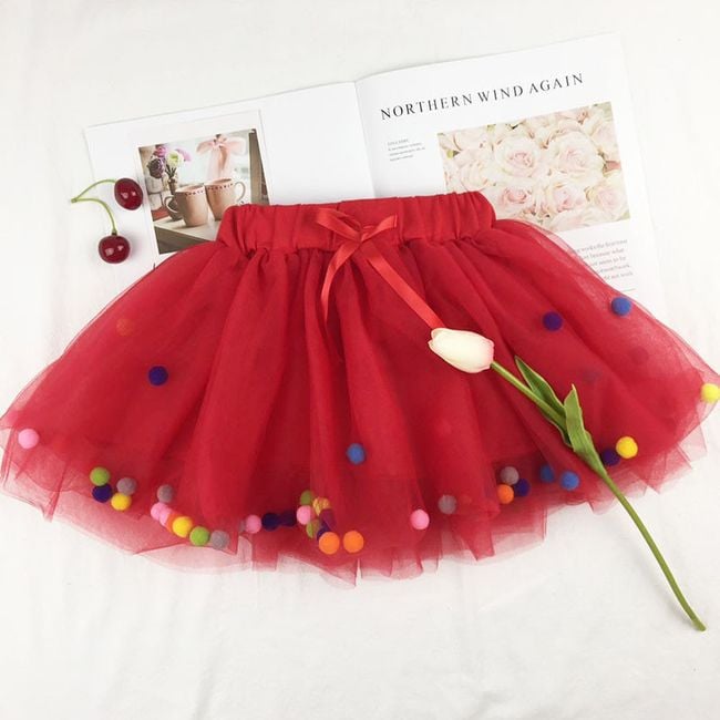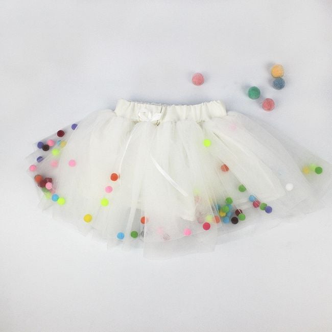 The skirt is suitable for all little fashionistas up to 6 years old. The skirt is adorned with small cute pom-poms.