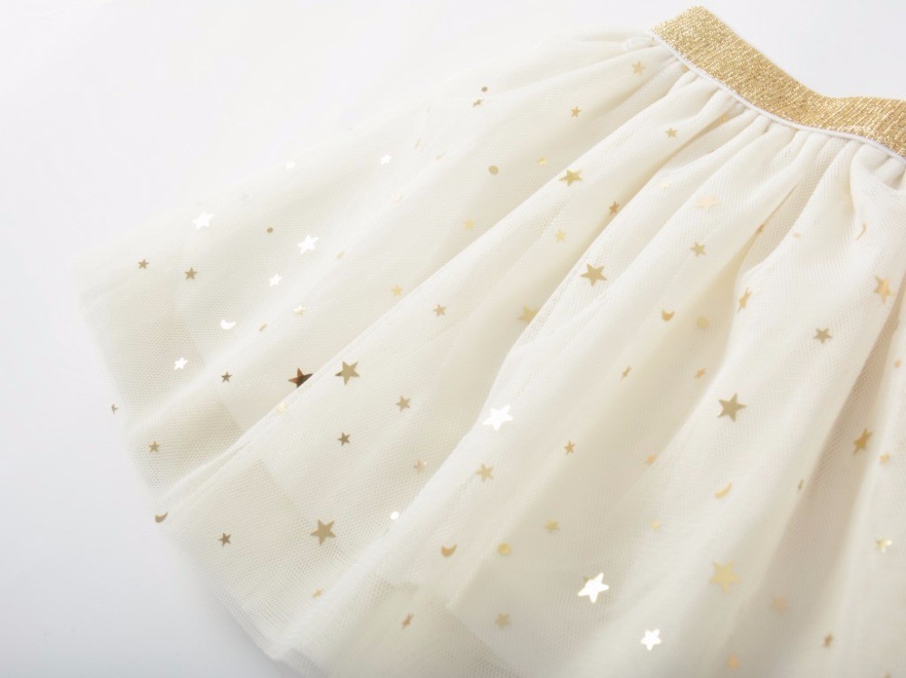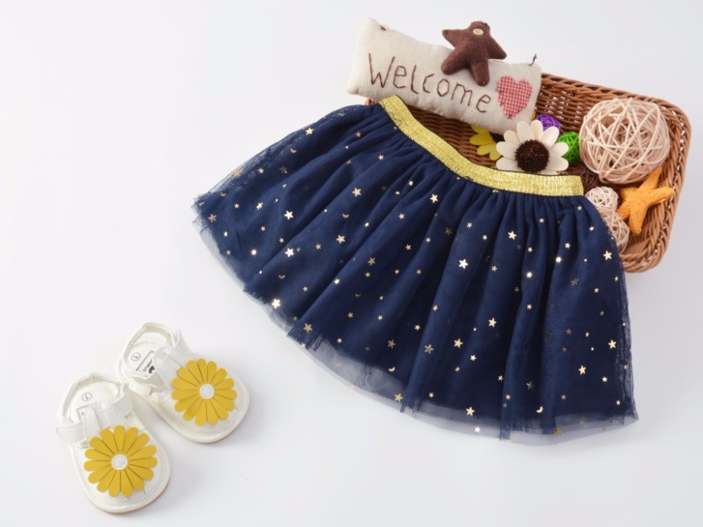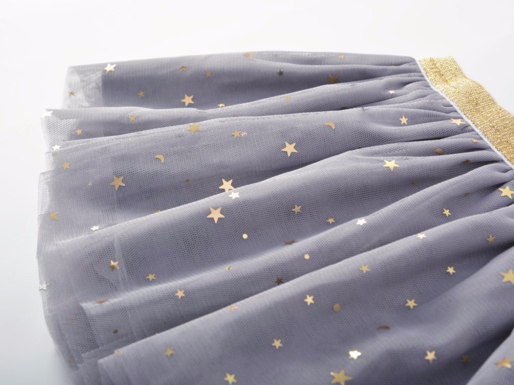 Beautiful girls' skirt with several sparkling stars and a gold stripe at the waist.