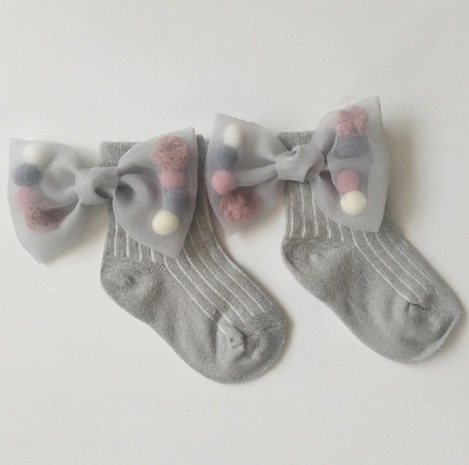 Complete your daughter's outfit with these beautiful socks featuring a bow.