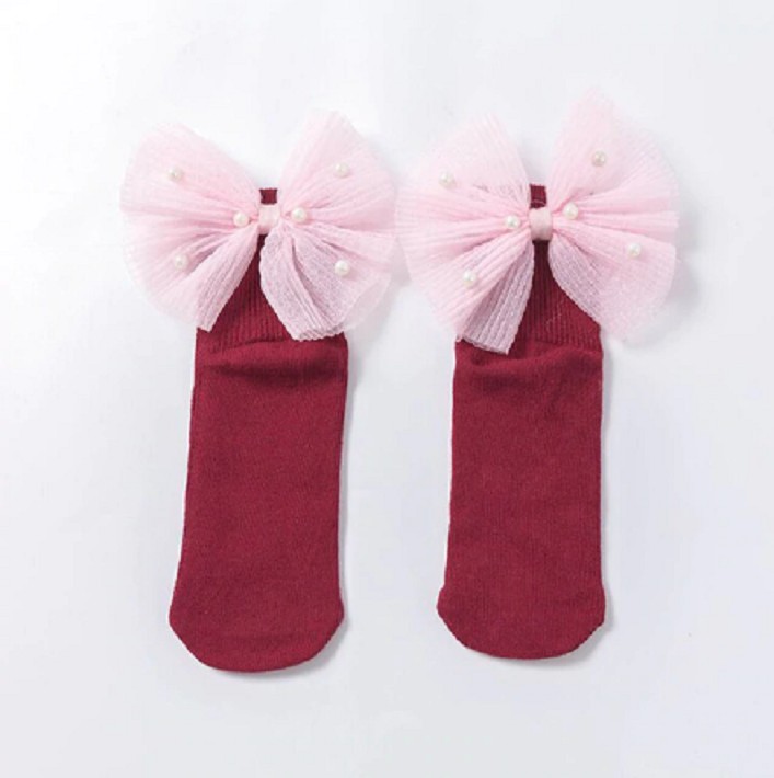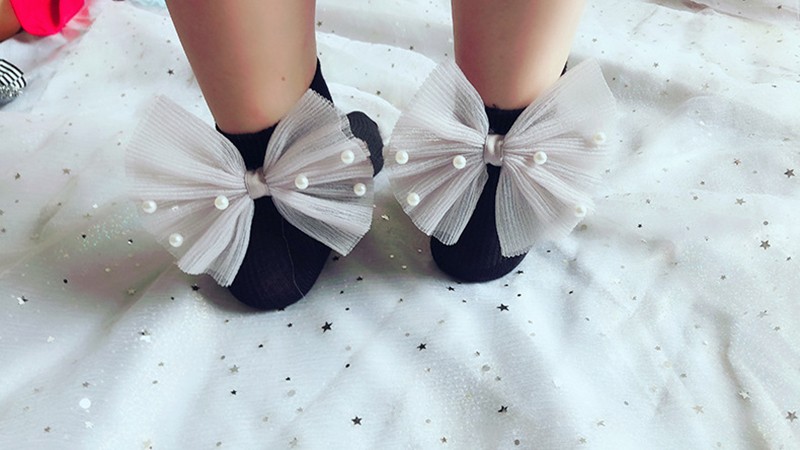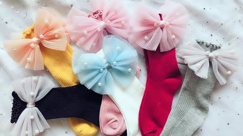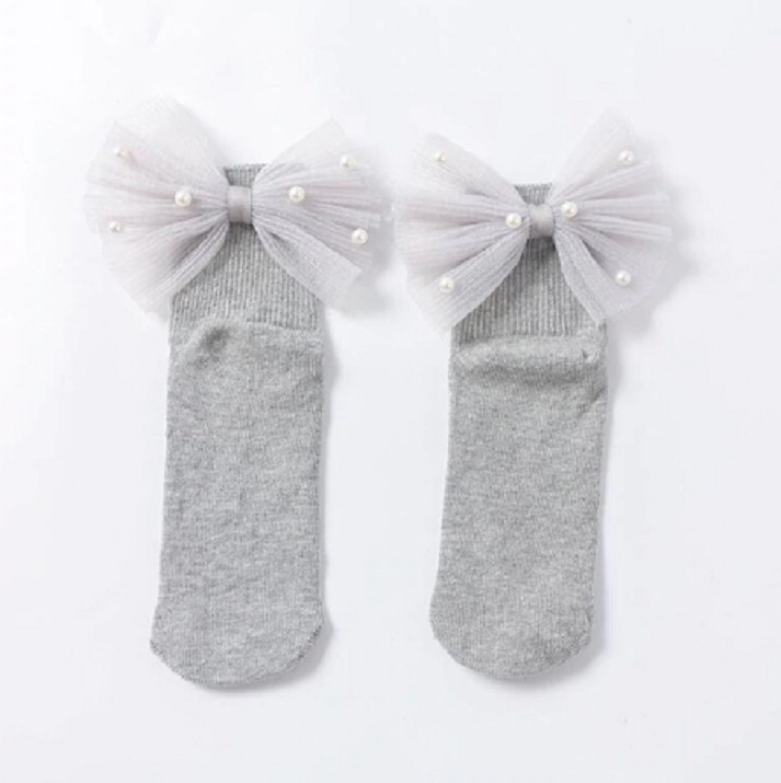 Girls' socks with a large bow and pearls