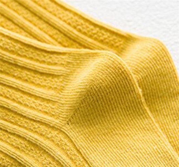 The socks are decorated with ruffles.