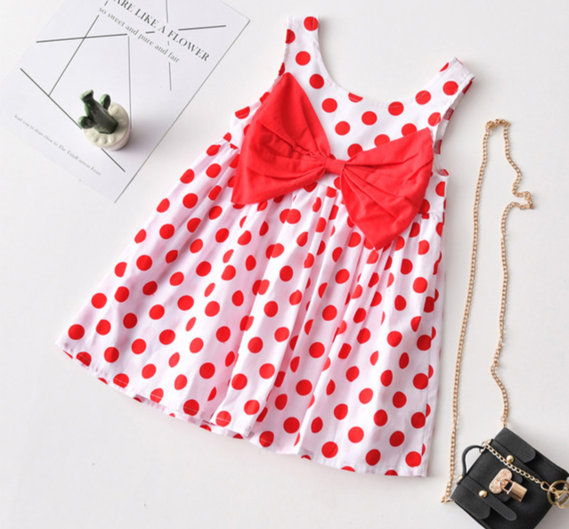 Tags: girls' dress, children's dress, summer dress, spring dress, formal dress, dress with a large bow, polka dot dress, children's clothing, kids