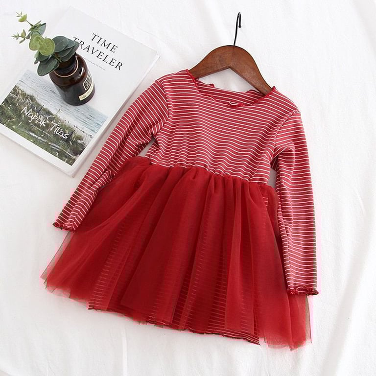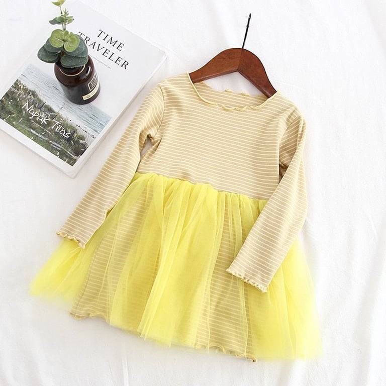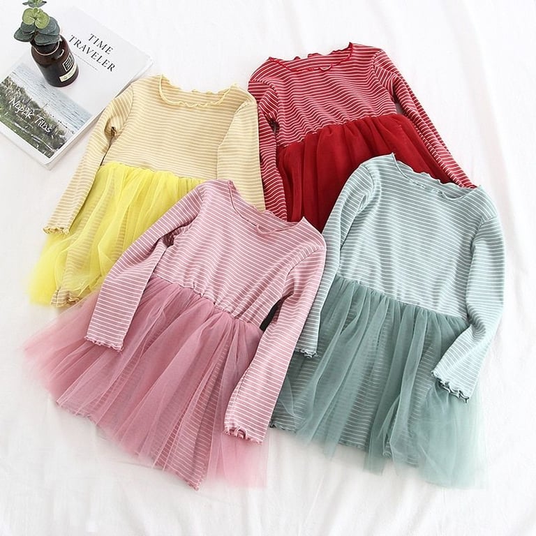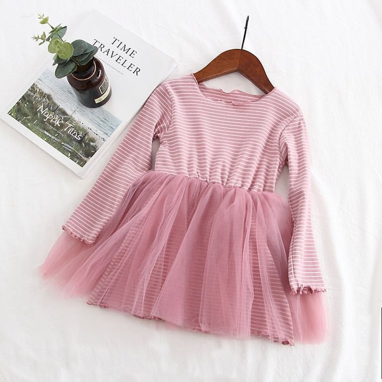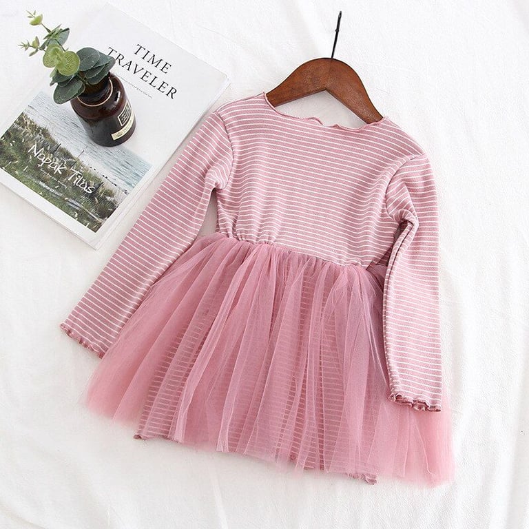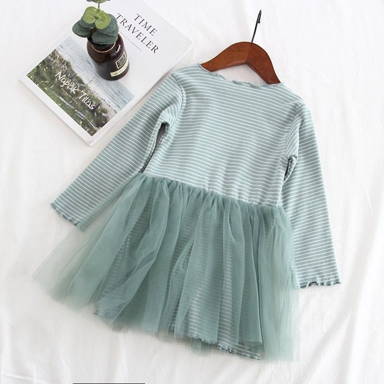 Girls' Stylish Striped Long Sleeve Dress Sana