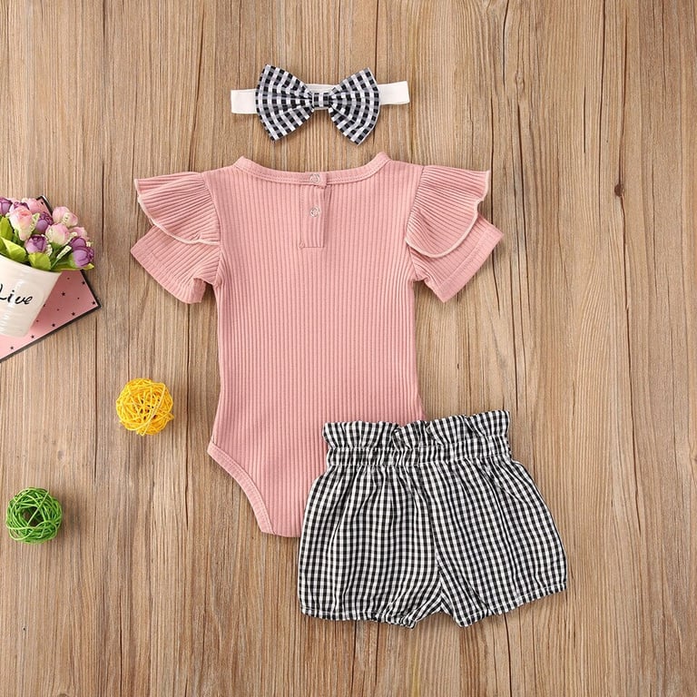Girls' Summer Clothing Set – Short Sleeve Bodysuit, Shorts and Headband