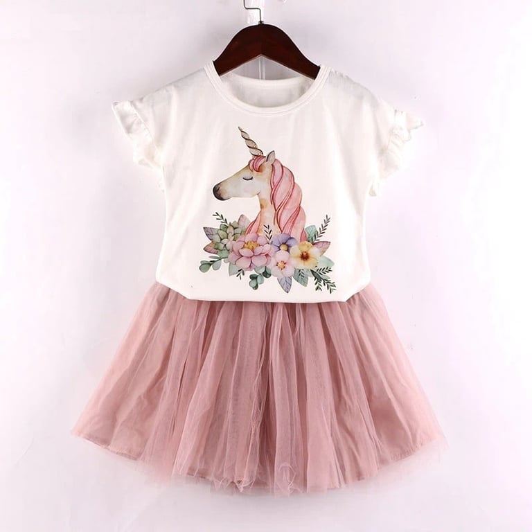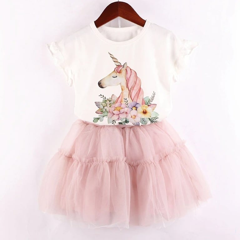 Girls' T-shirt with Unicorn and Skirt